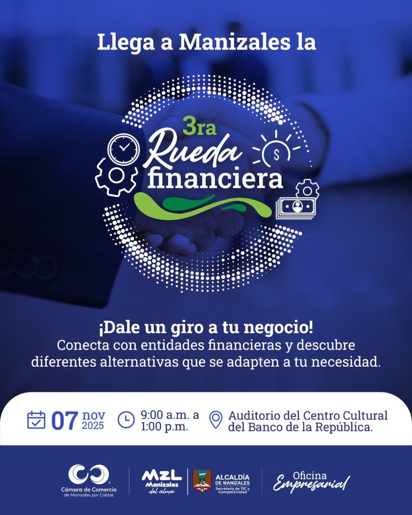 Durante la jornada, los asistentes podrán participar en citas uno a uno con representantes de distintas entidades financieras, quienes ofrecerán orientación sobre líneas de crédito, tasas preferenciales y mecanismos de financiamiento adaptados a las necesidades de cada empresa o emprendimiento. El secretario de TIC y Competitividad de Manizales, Daniel Toro Rendón, destacó que esta es […]