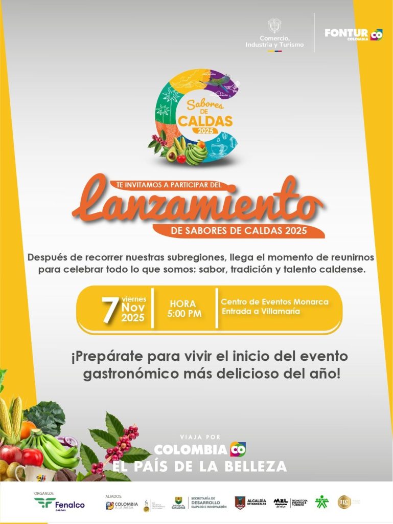 Manizales vivirá un fin de semana lleno de aromas, sabores y tradición con la apertura de Sabores de Caldas, un evento que reúne a los principales exponentes de la gastronomía local y regional en el Centro de Eventos Monarca. La actividad se desarrollará del 7 al 10 de noviembre, de 10:00 a. m. a 8:00 […]