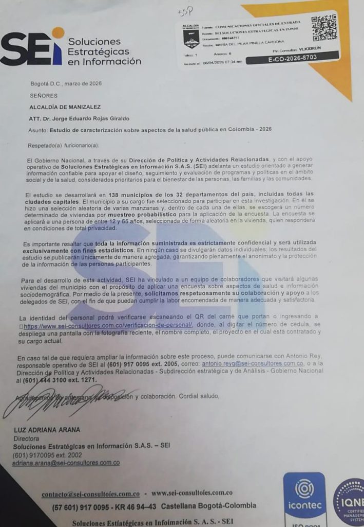 Luego de las dudas iniciales que llevaron a recomendar a la ciudadanía abstenerse de participar en la encuesta sobre consumo de sustancias, la Alcaldía de Manizales informa que ya se cuenta con una respuesta oficial por parte de la autoridad competente a nivel nacional. Esta aclaración permite brindar tranquilidad y confianza a los ciudadanos frente […]