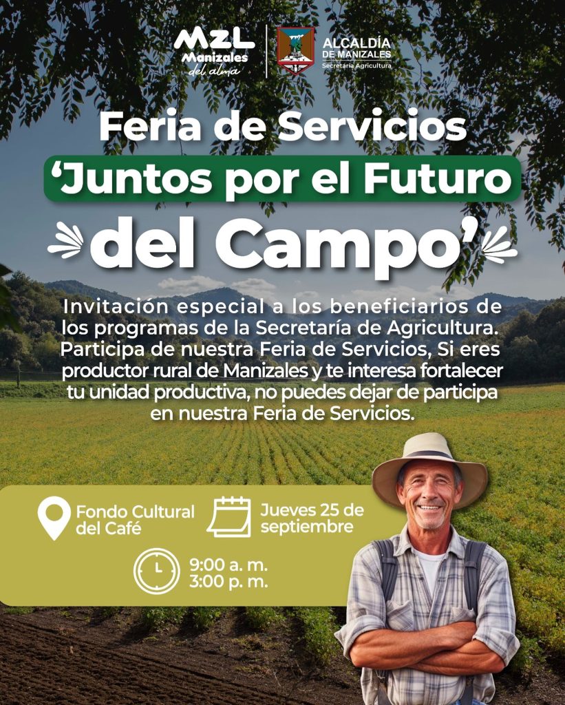 La Secretaría de Agricultura de Manizales hace extensiva la invitación a todos los beneficiarios de sus programas y a la comunidad rural en general para que participen en la Feria de Servicios ‘Juntos por el Futuro del Campo’, una jornada pensada para acercar soluciones, oportunidades comerciales y servicios técnicos a los productores agropecuarios del municipio. […]