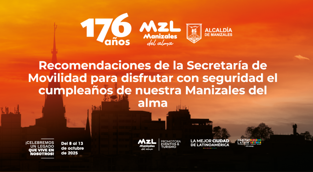Imagen: la Secretaría de Movilidad entrega recomendaciones para celebrar con responsabilidad el cumpleaños 176 de nuestra Manizales del alma Con motivo del cumpleaños 176 de Manizales, la Secretaría de Movilidad implementa un plan especial para garantizar la seguridad y fluidez vehicular durante las actividades programadas entre el miércoles 8 y el lunes 13 de octubre. […]